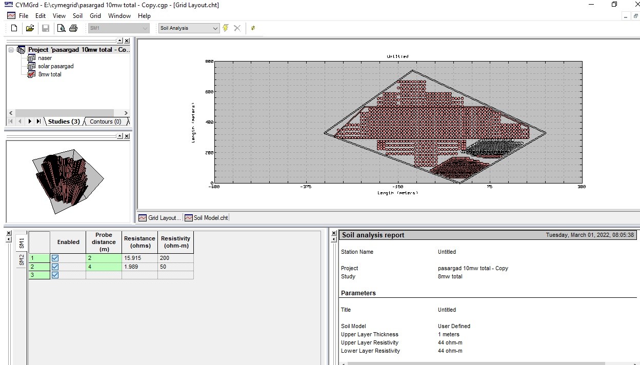 - محاسبات سیستم ارت شامل مقاومت، گراف GPR، ولتاژ گام، ولتاژ تماس، زمان قطع کلید حفاظتی و انتخاب منحنی قطع و کلید حفاظتی